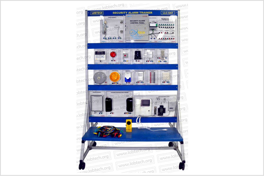 The Labtech Security Alarm Trainer is designed to introduce students and technicians to basic security alarm systems. The security industry is a fast growing sector in many economies that requires skilled technicians for installation and maintenance of alarm systems.